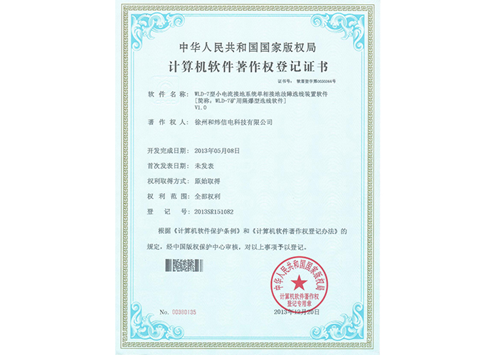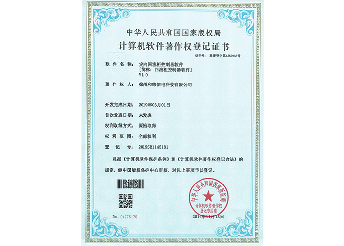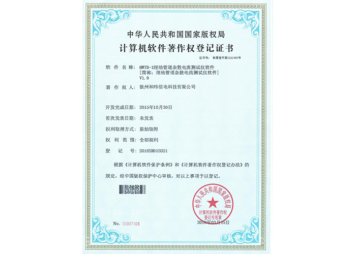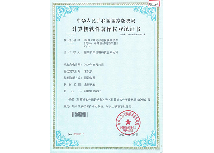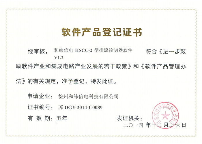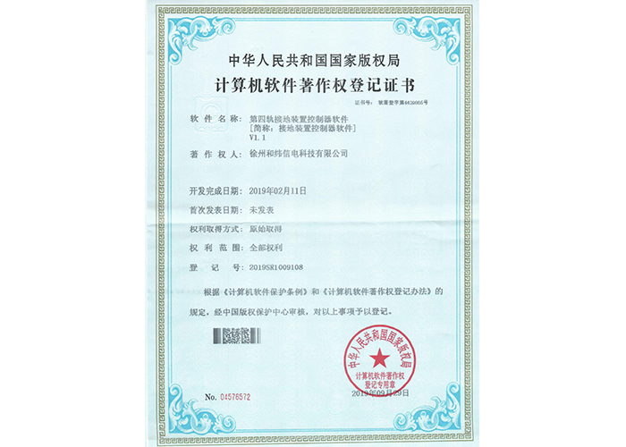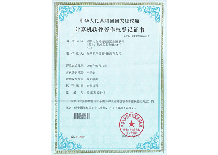 • 10軟件產(chǎn)品登記證書——和緯信電HSCC-2型排流控制器軟件V1.2